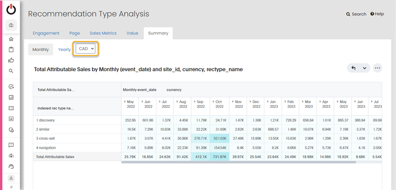 We have introduced an enhancement to the Rec Type Analysis feature, providing Digital Optimization Managers with more accurate and insightful data. With the new update, you can now see a summary for each currency separately, allowing you to analyze attributable sales more effectively.