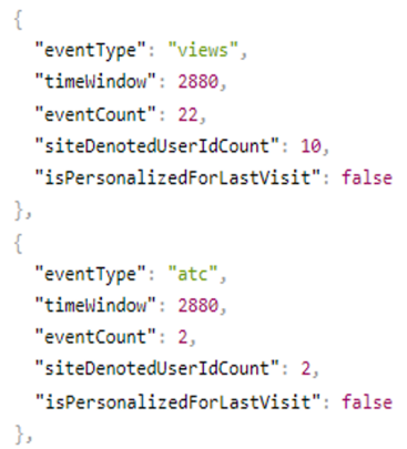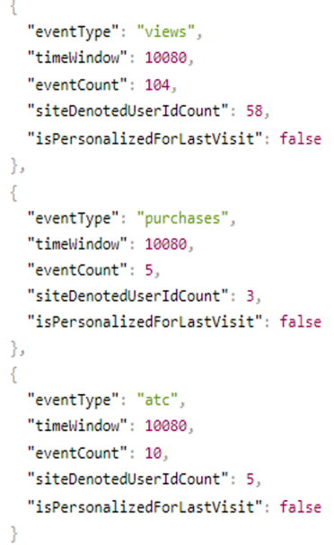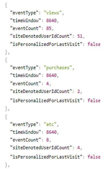 eventCount: It is the purchase/add-to-cart event count for the eventType and timeWindow.