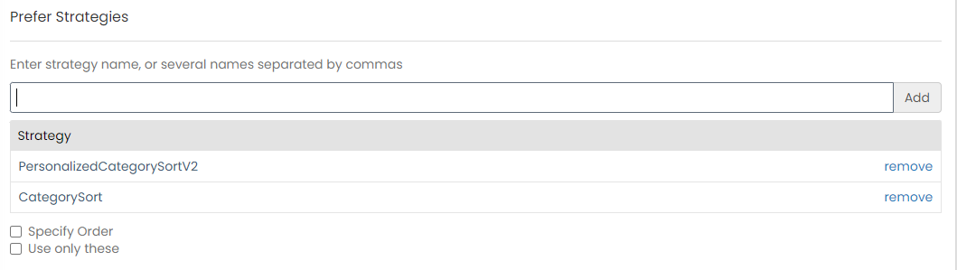 Most sites will want to use both strategies, using PersonalizedCategorySortV2 first, followed by CategorySort: