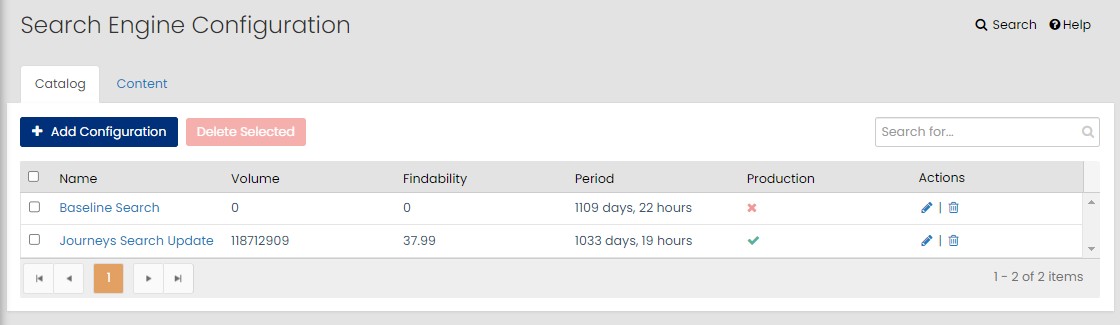 The Search Engine Configuration page allows you to perform the following search configurations: