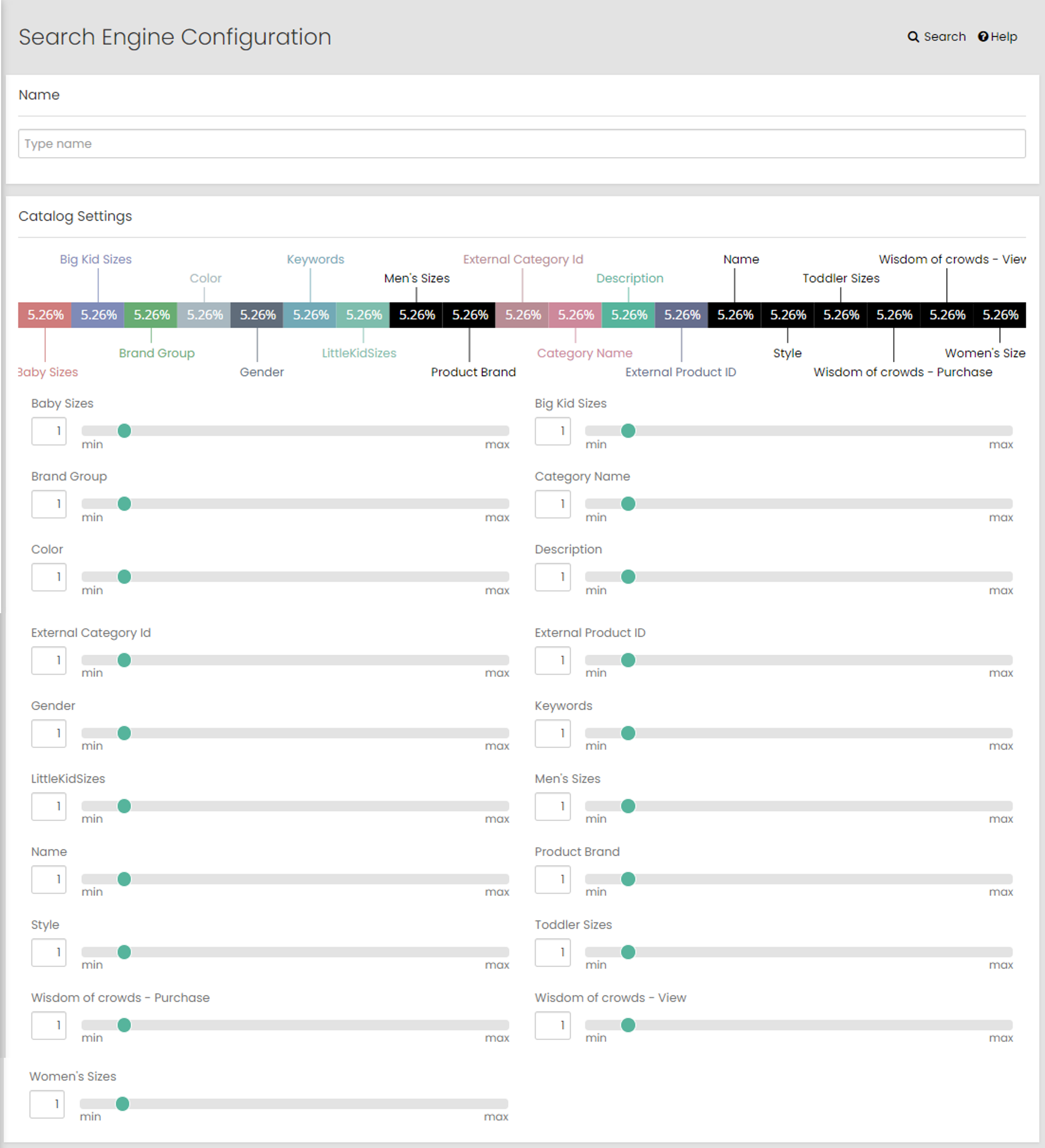 In the Catalog Settings area, set all the attributes to the required value ranges between a minimum value 1 to maximum value 10.