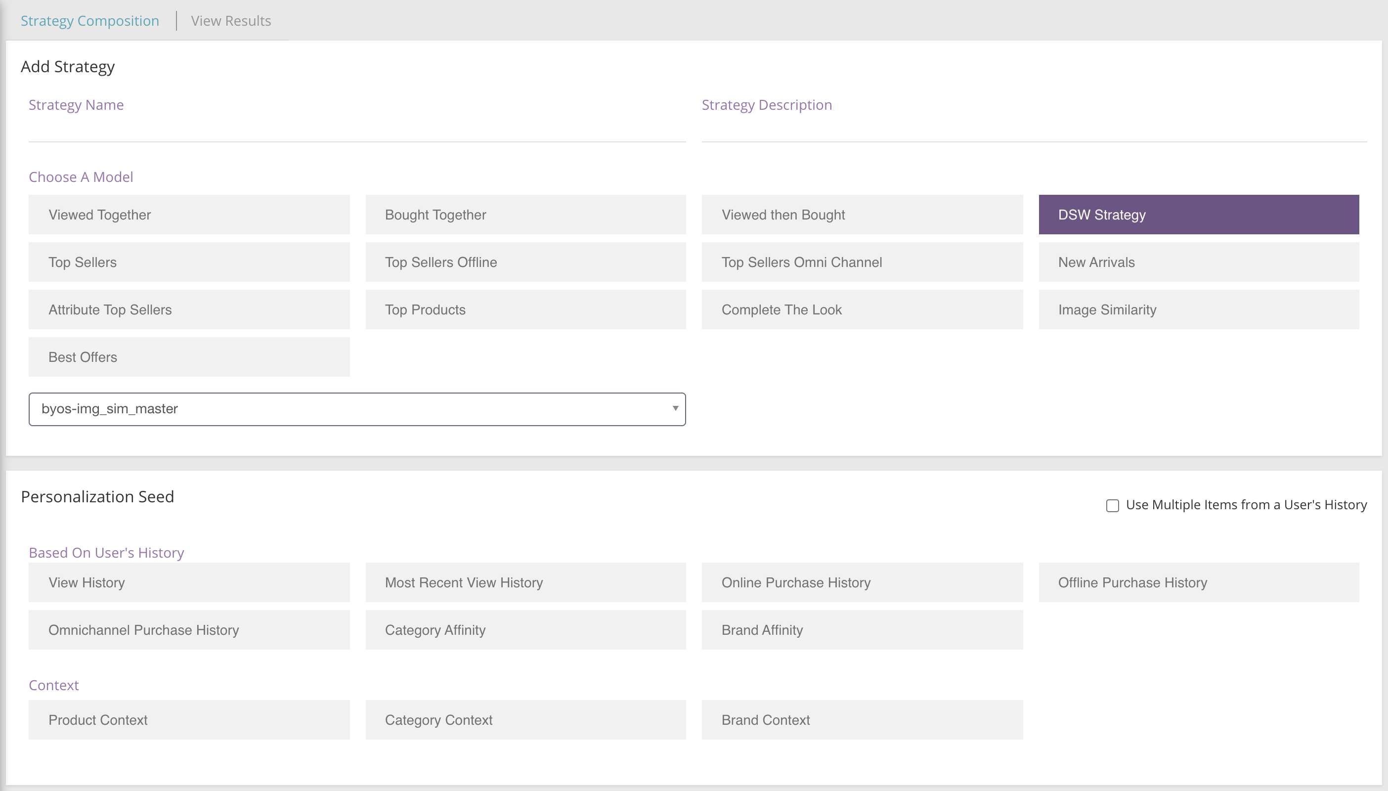 With Configurable Strategies you can now seed your DSW models with Category, Brand, or no seed options. For example, you may create your own Top Sellers model and make it specific to the Brand context of the user.